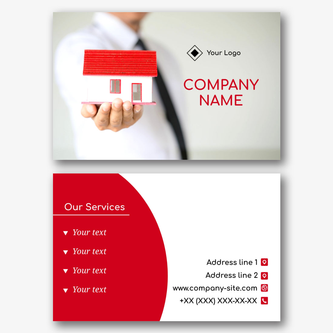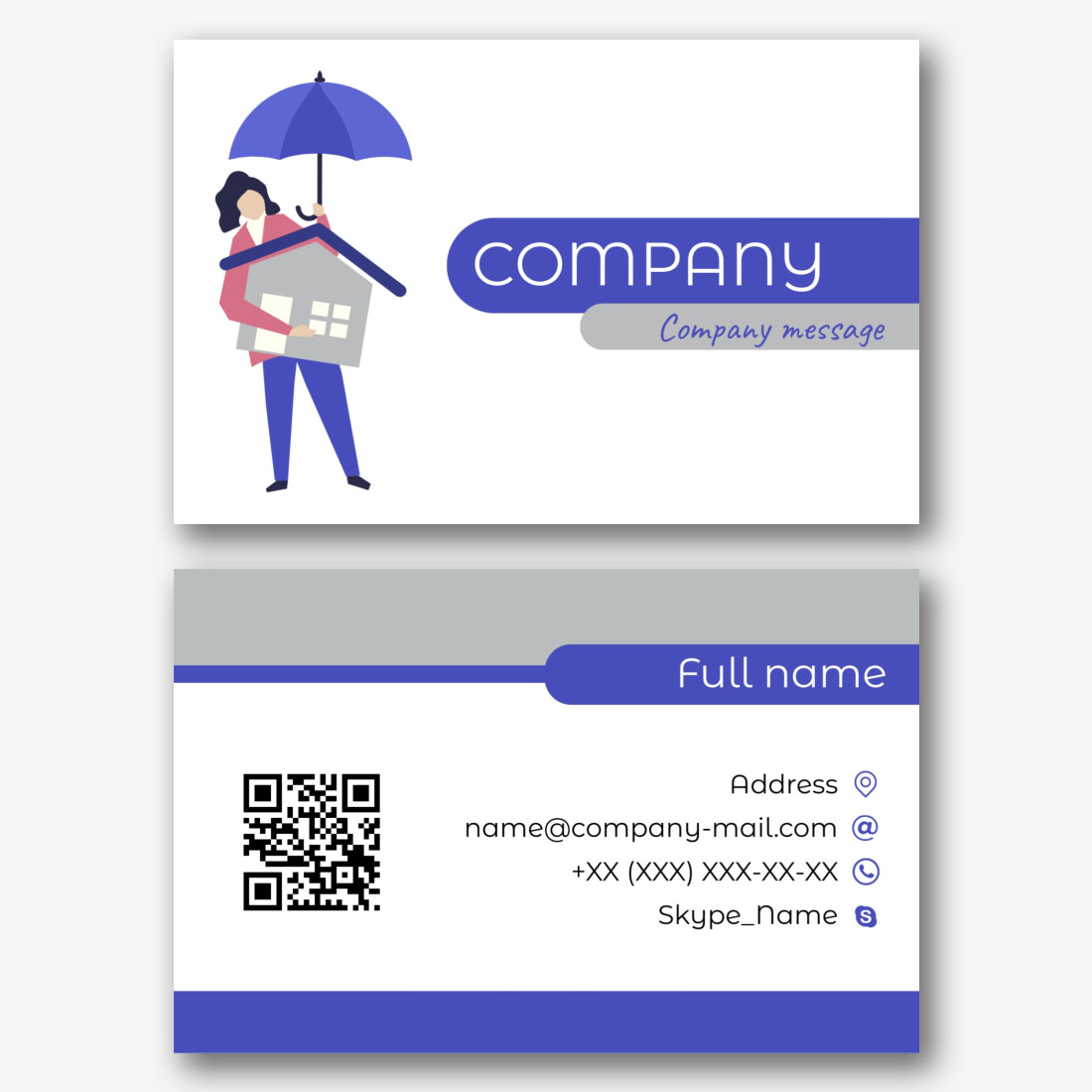 Free business card template for an insurance company, real estate agency, construction company. Create a business card layout with your own hands in the online business card designer.