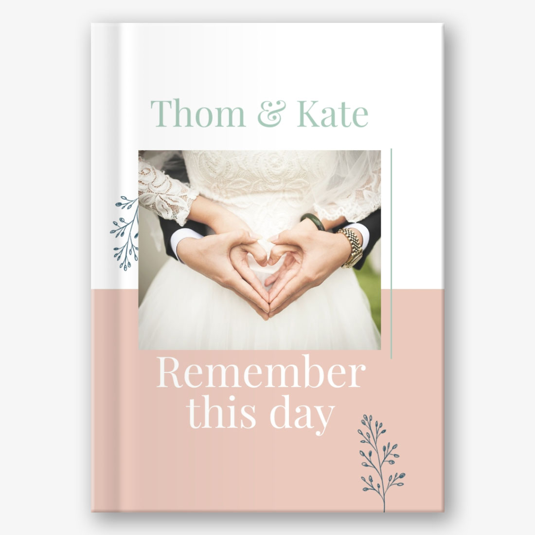 Free wedding photo book template for memorable moments. Create a layout with your own hands in the online photo book designer.
