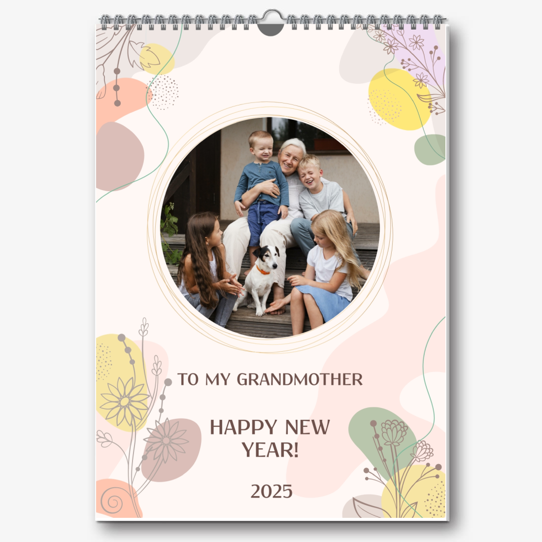 Free gift calendar template with photos of grandmothers and grandchildren. Create a layout with your own hands in the online calendar designer.